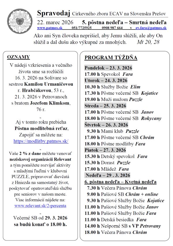 - Spravodaj22.10.202320. nedeľa po Svätej Trojici