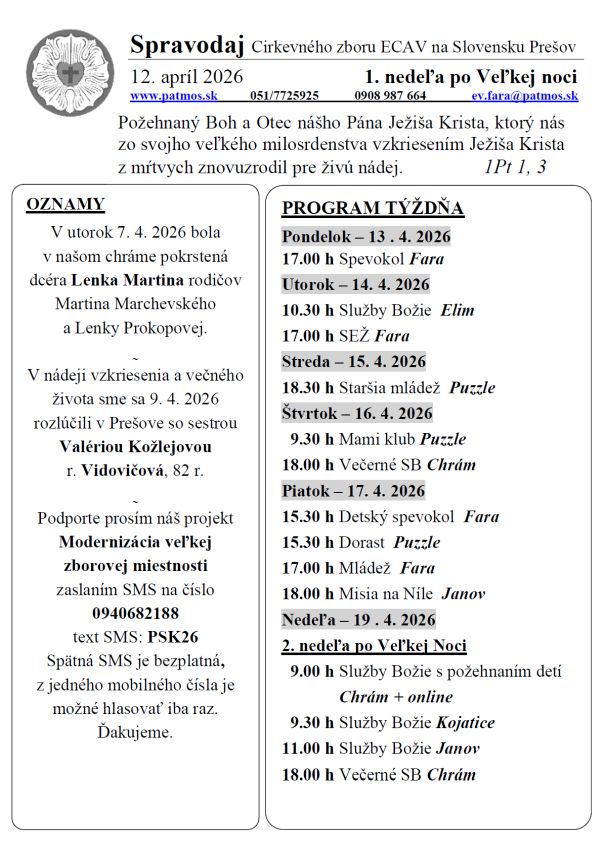 - Spravodaj27.4.20251. nedeľa po Veľkej noci